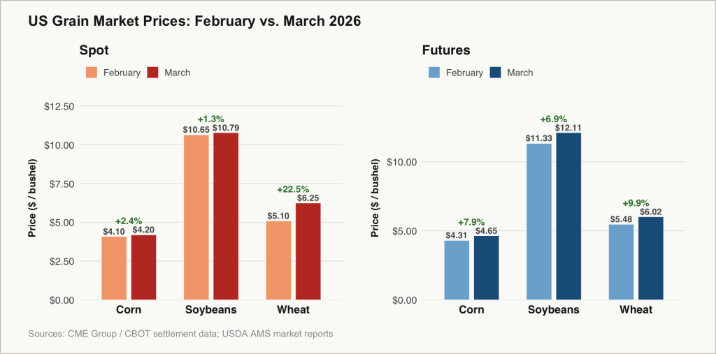 Figure 2: US Grain Markets for Corn, Soybeans, and Wheat (February-March, 2026)