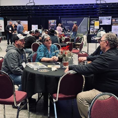 During the two-day event, time was allocated between sessions and speakers for attendees to visit the exhibitor booths and network with fellow farmers, ag experts, and the farmer mentors from Minnesota Soil Health Coalition. Farmer mentors in attendance included MFU members Mike Seifert, Ben Dwire, and Grant and Dawn Breitkreutz, who were available to talk to farmers about regenerative ag topics such as grazing, composting, and cover crops.